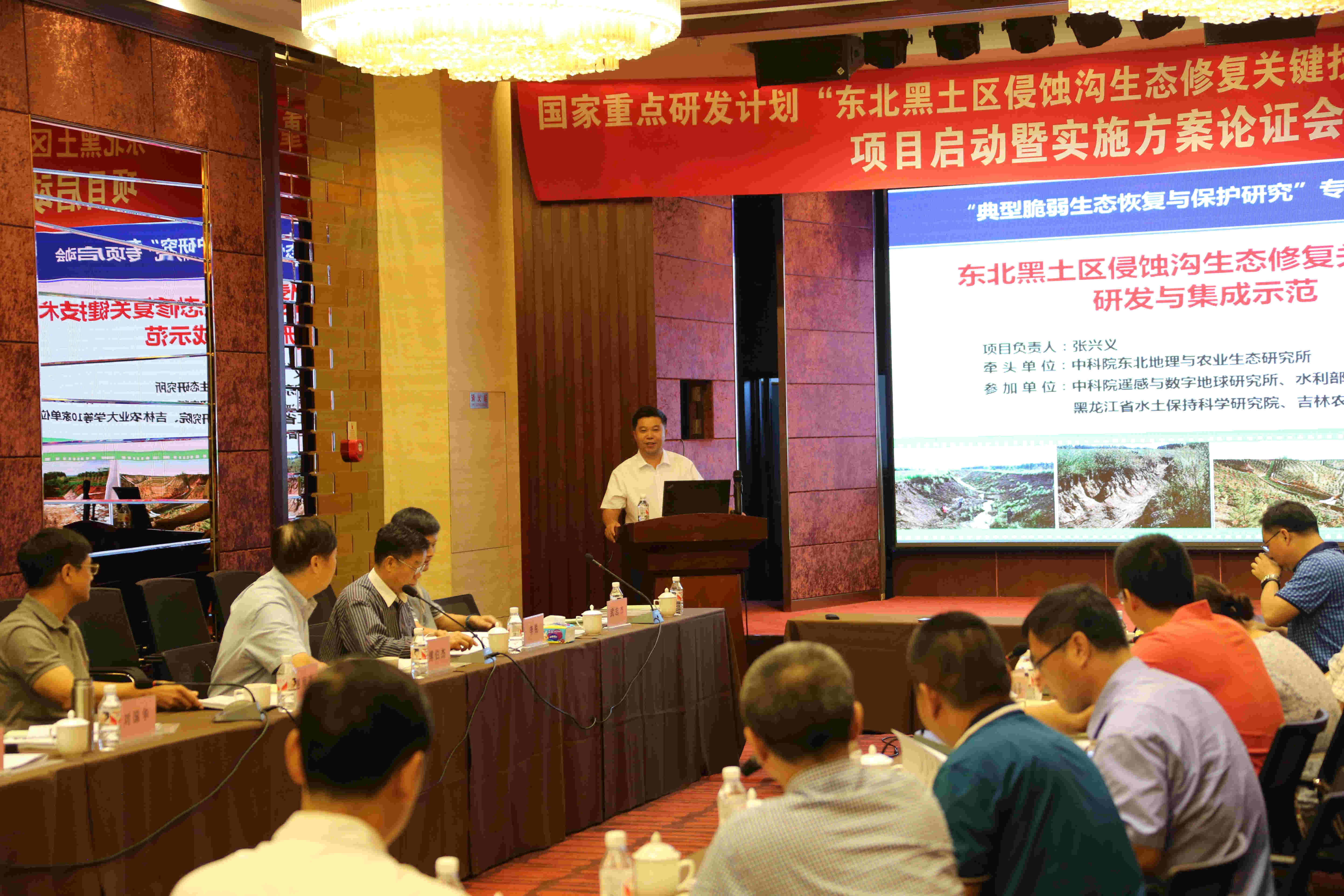 2017年8月18日,由中国科学院东北地理与农业生态研究所牵头承担的国家重点研发计划“典型脆弱生态修复与保护研究”专项“东北黑土区侵蚀沟生态修复关键技术研发与集成示范”项目启动暨实施方案论证会在哈尔滨市召开。专家组由傅伯杰院士、世界水土保持学会主席李锐研究员、东北林业大学赵雨森教授、中国科学院生态环境研究中心刘国华研究员、中国科学院沈阳应用生态研究所武志杰研究员、水利部松辽水利委员会水保处范建荣副处长、吉林省农科院王立春研究员、中国科学院东北地理与农业生态研究员何兴元研究员和黄铁青研究员组成。“典型脆弱生态修复与保护研究”专项主管单位科技部21世纪议程管理中心资源环境处何霄嘉项目主管、专项推荐单位中国科学院科技促进发展局资环处周桔处长、中国科学院前沿科学与教育局地球科学处段晓男处长,以及项目、课题负责人、科研骨干和研究生等70余人参加了会议。会议由东北地理所副所长张平宇主持。