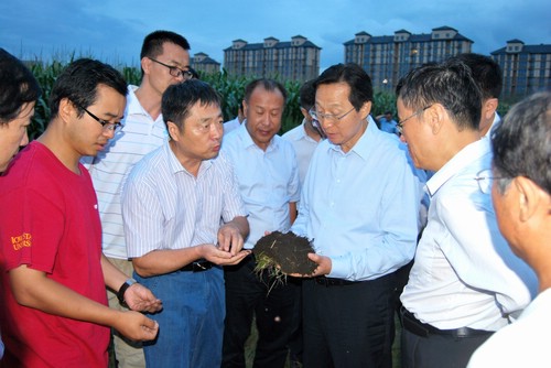 2017年8月11日傍晚,农业部部长韩长赋一行领导来到中国科学院海伦农业生态实验站调研,黑龙江省副省长吕维峰,绥化市市长张子林,海伦市委书记王学斌、市长韩启彬等地方领导陪同调研,海伦站站长韩晓增研究员向韩长赋汇报了海伦站的科研工作。2017年8月11日傍晚,农业部部长韩长赋一行到中国科学院海伦农业生态实验站调研,黑龙江省副省长吕维峰,绥化市市长张子林,海伦市委书记王学斌、市长韩启彬等地方领导陪同调研,海伦站站长韩晓增研究员向韩长赋汇报了海伦站的科研工作。