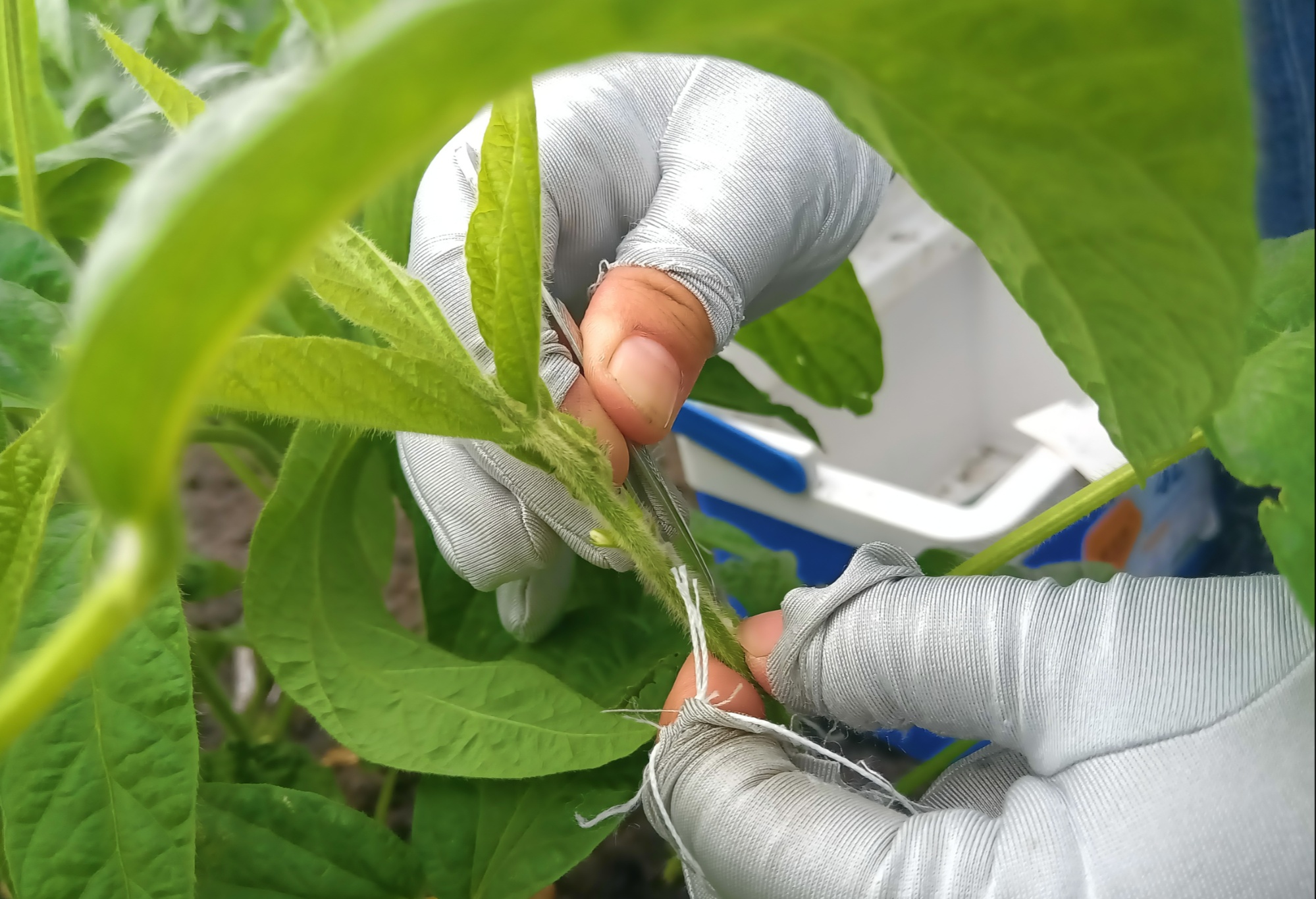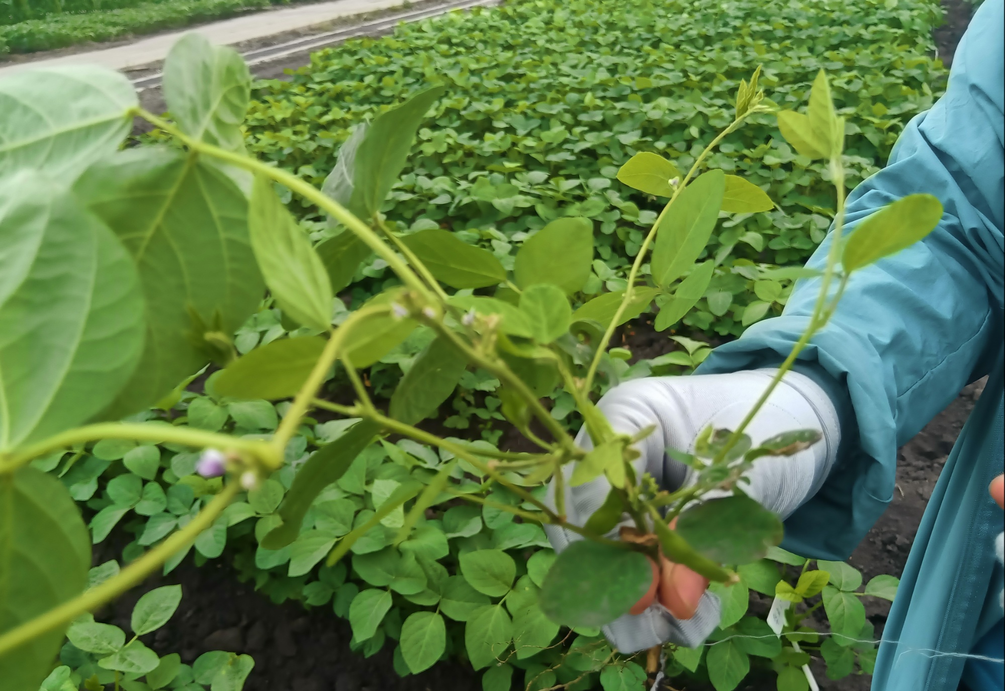 在中国科学院东北地理与农业生态研究所海伦农业生态实验站的实验田里,李艳华坐在自制的泡沫垫上,小心翼翼地将大豆花朵打开,与事先准备好的其他品种的大豆花朵结合。她边操作边向记者介绍,并不是每一朵花都能授粉,要找出大豆单株长势好、且花的质量也好的才可以。花期不等人,一个组合授粉最好在一周左右内完成,每年做400个杂交组合,每个组合做近100个小花,这项工作的繁重可想而知。