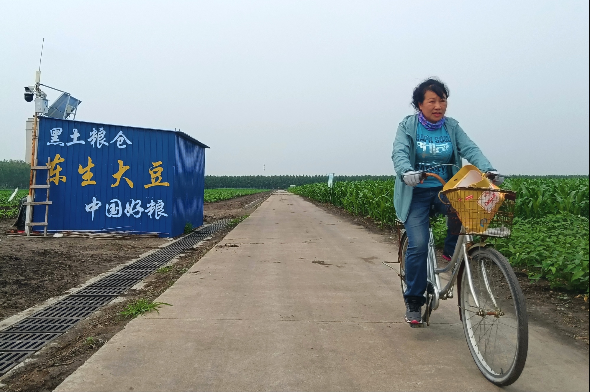 李艳华每天骑车往返办公室与实验田之间(央广网见习记者陈显春 摄)