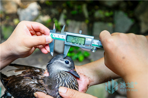 尹昭华讲解说,选择研究对象佩戴的首要标准是体重。追踪器的重量应在鸟的体重的3%为宜,这样质量占比更少,不影响鸳鸯日常活动。这两只雌鸳鸯体重符合,且分别是2岁和4岁,迁徙经验丰富,雌鸟羽毛为褐色,不易招引捕食者,相对更安全,追踪器会收集鸟的活动范围、飞行速度、高度等信息,以辅助专家探究野生鸳鸯为何在哈市更多地域出现,它们是如何适应城市生活的。