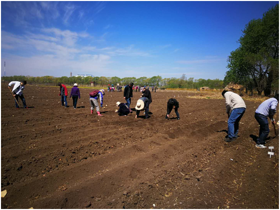 为加强与科研人员的交流,增强服务意识,5月7日上午,哈区机关党支部党员迎着晨曦的朝阳,驱车9公里到黑龙江省农科院园艺分院实验地,参与大豆分子设计育种学科组大豆播种工作。
