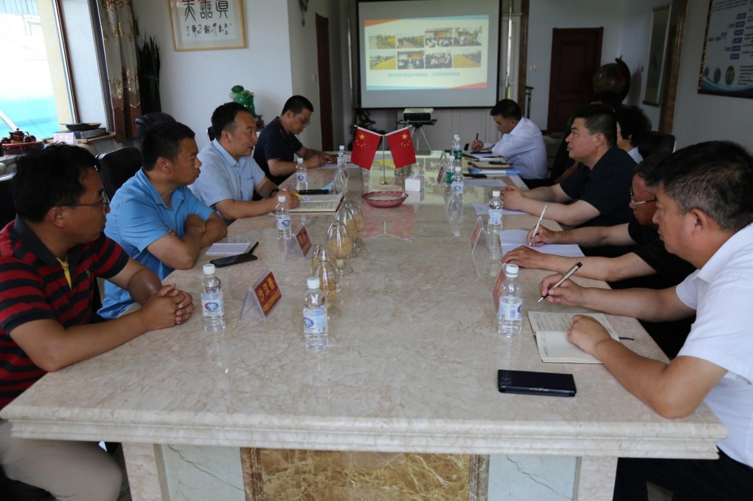 杨士锋代表庆安县委对东北地理所一行的到来表示热烈欢迎,详细介绍了庆安县农业基本情况并指出庆安县迫切需要通过选育优质、高产、抗逆水稻品种来提高水稻附加值。刘俊杰详细介绍了东北地理所的主要学科领域、核心竞争力、承担国家科技任务情况和实施进展。方军研究员介绍了团队在利用分子辅助选择培育水稻新品种方面取得的阶段性成果,展望了生物育种技术在未来的应用前景。李敏董事长介绍了双方的合作基础以及当前企业在水稻育种研发中遇到的困难,并表示将全力支持双方的科研攻关合作项目。