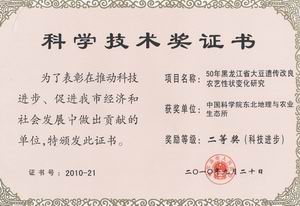 近日,我所主持的“大豆根系-冠层建成与产量形成研究”、“50年黑龙江省大豆遗传改良农艺性状变化研究”两个项目分获黑龙江省自然二等奖和哈尔滨市科技进步二等奖。