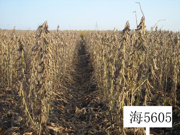 “东生5号”(原代号:海5605)是我所自主培育的大豆新品种。该品种特性:株高达到90 厘米左右,灰色茸毛,荚弯镰形,种子圆形,有光泽,百粒重20克左右;经过品质分析蛋白质含量41.06%,脂肪含量19.27%,每公顷产量2500多公斤,比对照品种增产8.6%~9.5%,且抗灰斑病,适合于黑龙江省第三积温带区域种植。