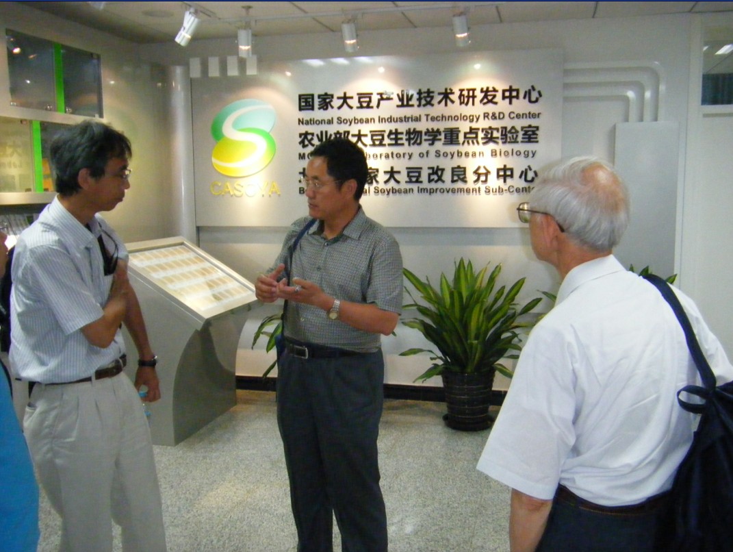 应中国科学院东北地理与农业生态研究所大豆分子育种研究团队的邀请,受国家外国专家管理局和黑龙江省外专局的资助,世界著名大豆分子遗传学家日本生物资源研究所原田久也先生、北海道大学阿部纯教授于2011年8月2日至11日在我国主要的大豆科研单位进行讲学与学术交流。