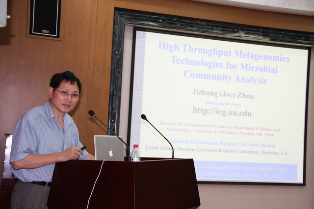 7月30日,应我所农田分子生态学科组邀请,美籍华裔科学家,清华大学环境学院教授、国际环境微生物基因组学及生态学研究领域的领衔科学家周集中教授来我所进行学术访问交流。并作了题为“High Throughout Metagenomics Technologies for Microbial Community Analysis”的学术报告。