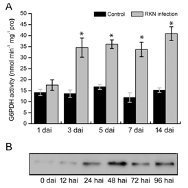 图1 线虫侵染导致G6PDH酶活及蛋白含量升高
