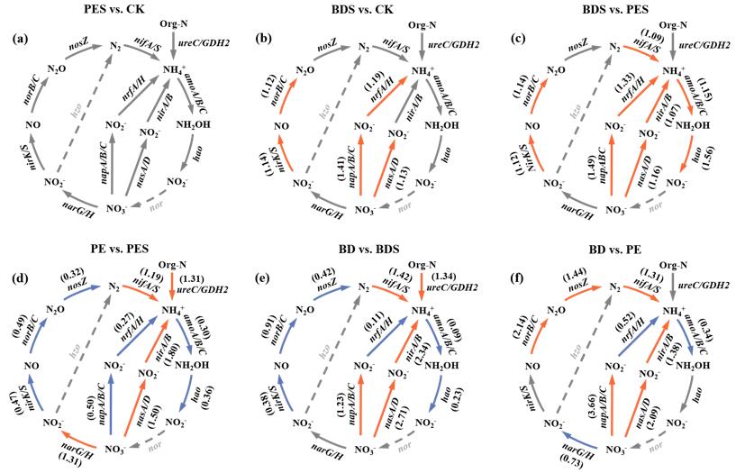 图2 BMP微塑料圈中氮代谢关键微生物调控路径