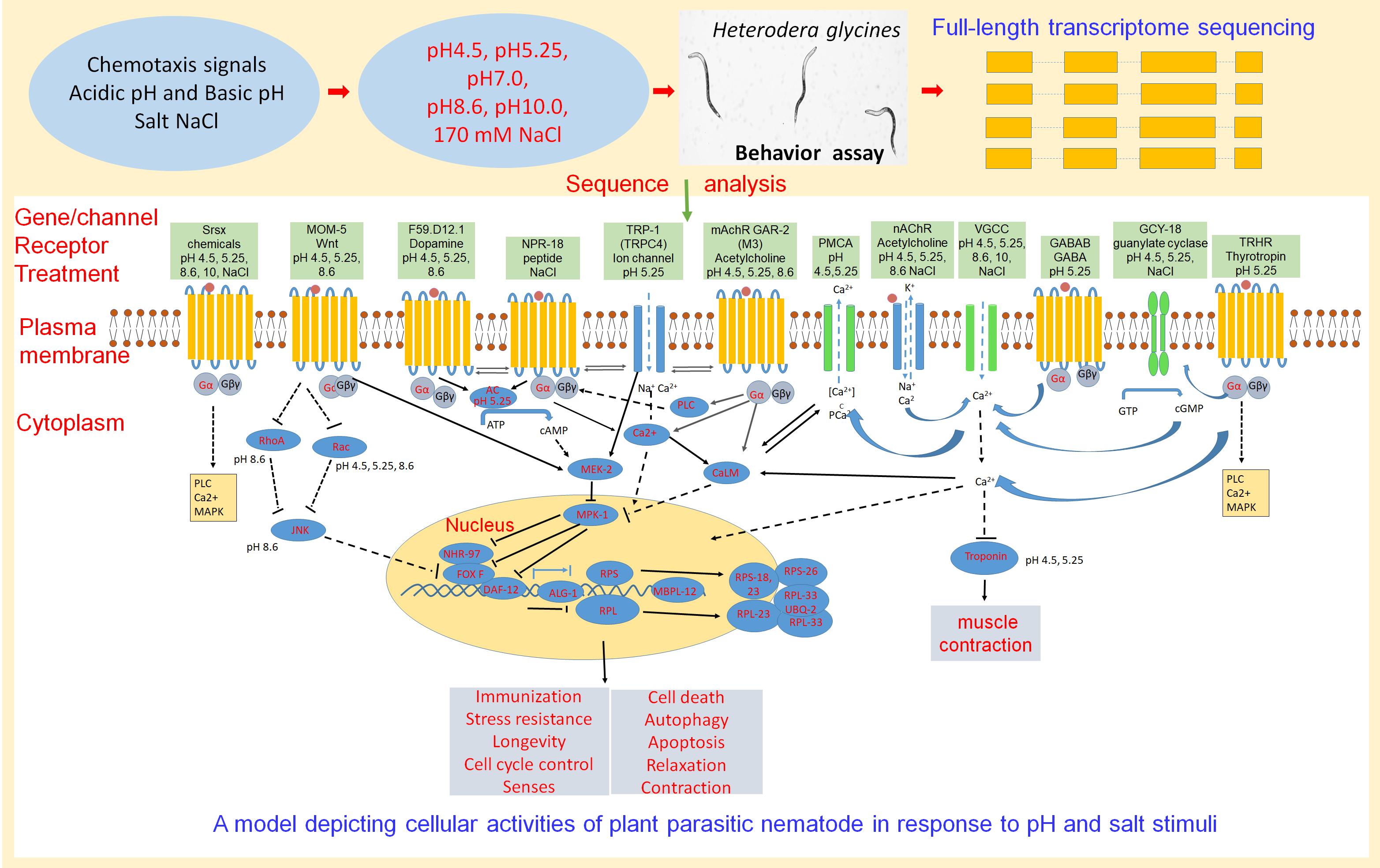 图2 调控大豆孢囊线虫响应pH和NaCl的细胞模型