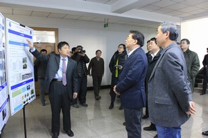 白春礼院长首先听取了黑土肥沃耕层构建技术、大豆分子遗传基础与分子育种、东北林下野生植物资源开发、黑土侵蚀治理关键技术以及“东生”系列大豆品种转化等方面的成果展示介绍。随后,何兴元所长就东北地理所“十二五”取得的主要成绩、十三五“一三五”战略规划以及当前工作进展作了全面汇报。