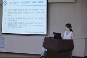会上,行政机关党支部赵春萍同志作了《积极参加“两学一做”做合格党员》;大豆党支部翟红同志作了《认真学习党章党规、习近平总书记系列重要讲话,增强党性修养》,黑土党支部严君同志作了《以党章为镜 锤炼党性作风——学习 “两学一做”心得体会》,研究生党支部王亚英同志作了《“两学一做”学习心得》,各支部同志结合近期的“两学一做”学习教育畅谈了自己学习体会。