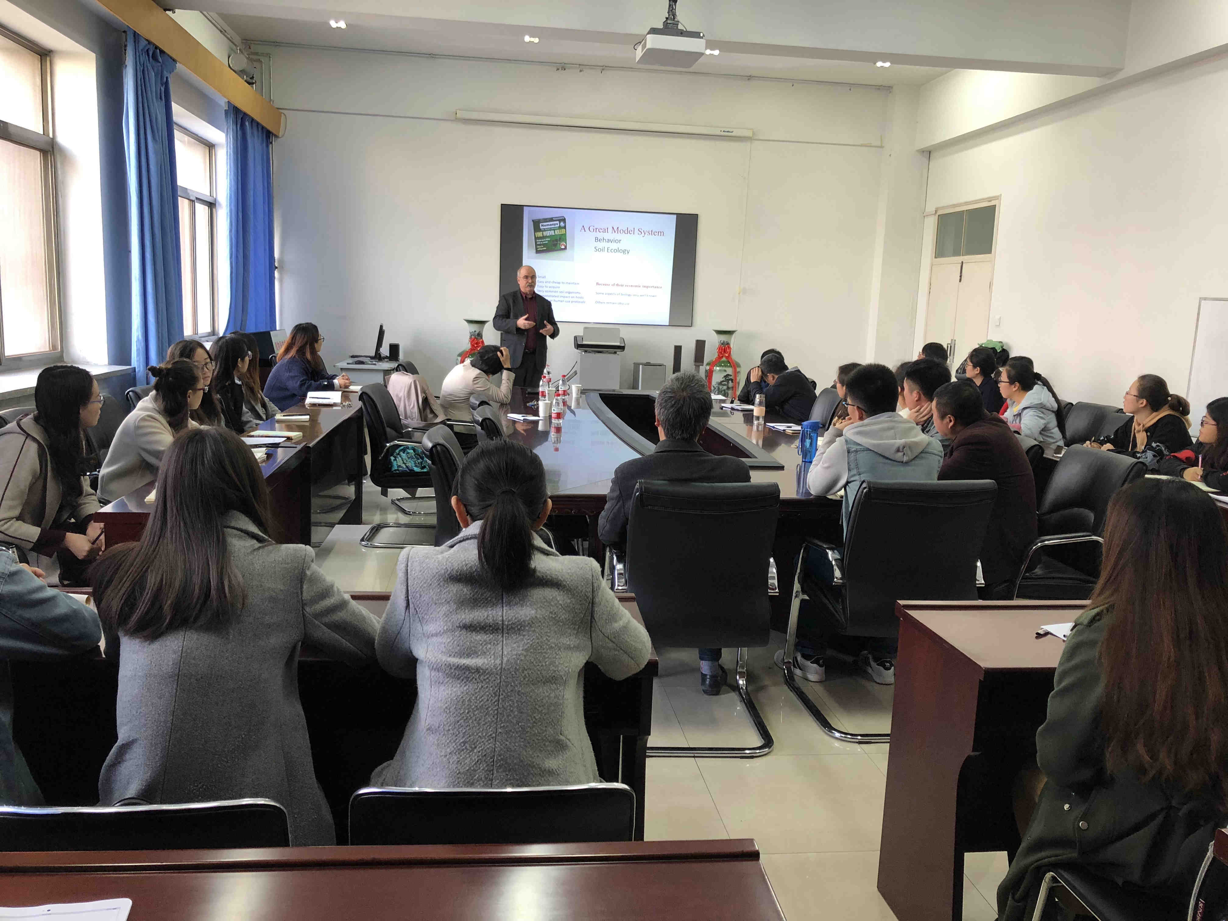 王从丽研究员和李春杰副研究员陪同Edwin E. Lewis教授访问了甘肃农业大学植物保护学院,该学院同我所就昆虫病原线虫方面有多年合作研究。3人分别为师生作了报告,探讨了如何进一步合作研究中国东西部和美国昆虫病原线虫生物学特性差异,为田间害虫生物防治提供理论依据。