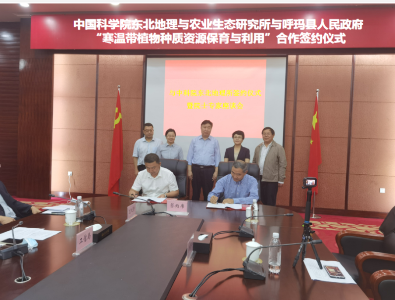 8月6日,何兴元分别与呼玛县常务县长王力勇在加格达奇签订了“寒温带植物种质资源保育与利用合作协议”,与大兴安岭地区农业林业科学院院长张亚奎签订了长期合作框架协议。在院士专家与地方单位领导交流座谈会上,傅伯杰针对大兴安岭地区经济社会发展实际情况与存在问题,高屋建瓴地提出了“展现生态价值、推进绿色发展、打造品质兴安”的大兴安岭发展建议。