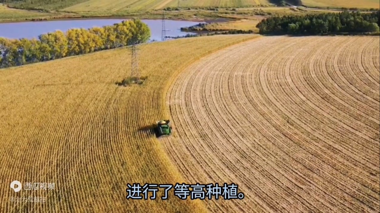 “等高种植”地块收获(视频来源:友谊农场电视台季生军)