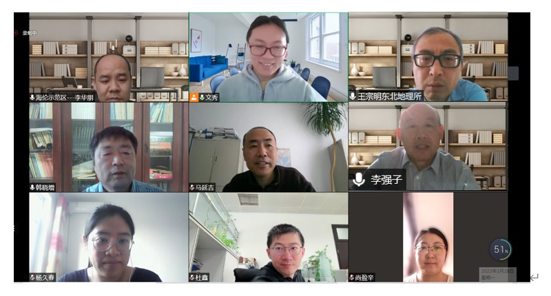 为贯彻落实“黑土粮仓”专项办对立体监测模式的相关要求,并吸纳海伦示范区2022年实施方案评审会专家提出的宝贵意见和建议,在王宗明副所长召集下,海伦示范区于3月28日召开了模式5(立体观测模式)方案调整研讨会。海伦示范区主管所领导王宗明副所长、技术负责人韩晓增研究员和隋跃宇研究员、项目负责人邹文秀研究员、立体观测模式负责人李华朋副研究员及子模式负责人和骨干共计12人参加了会议。会议以线上形式召开,邹文秀主持了会议。