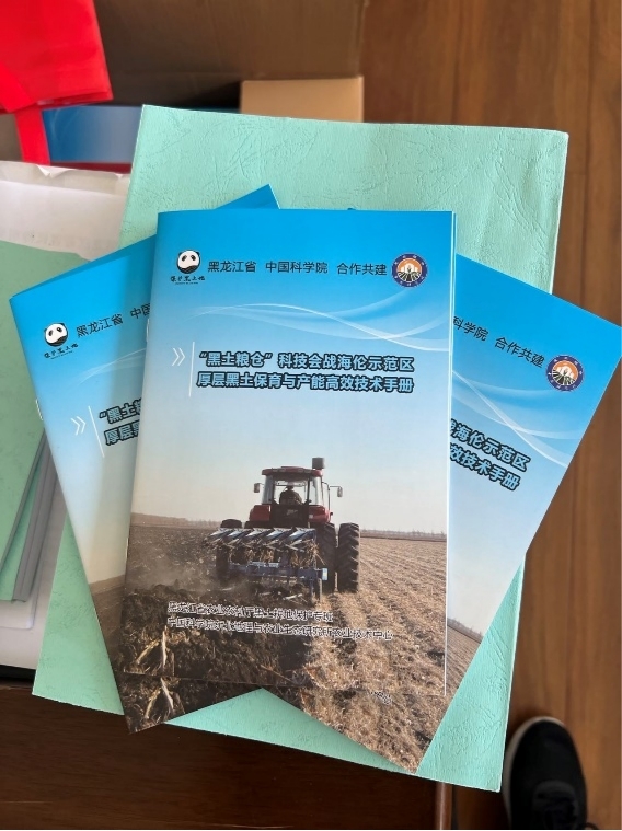 海伦示范区青年突击队负责人邹文秀研究员和技术负责人韩晓增研究员撰写并提交的《浅谈秸秆还田对黑土保护的作用》和《东北黑土地-做好保护与发展的时代课题》,在“保护黑土耕地、端牢中国饭碗”主题征文活动中分别获得了一等奖和二等奖,彰显了海伦示范区在新时期黑土地保护利用工作的智慧力量和维护国家粮食安全压舱石的政治担当,展示了黑土地保护“龙江样板”的经验做法。海伦示范区制作的“黑龙江省中国科学院合作共建‘黑土粮仓’科技会战海伦示范区”和“黑土地‘耕地中的大熊猫’”展板在主会场展出,同时印刷了“厚层黑土保育与产能高效海伦示范区技术手册”500本在主会场发放,进一步提高广大民众对中国科学院“黑土粮仓”科技会战的认知,提升黑土地保护的公共意识。