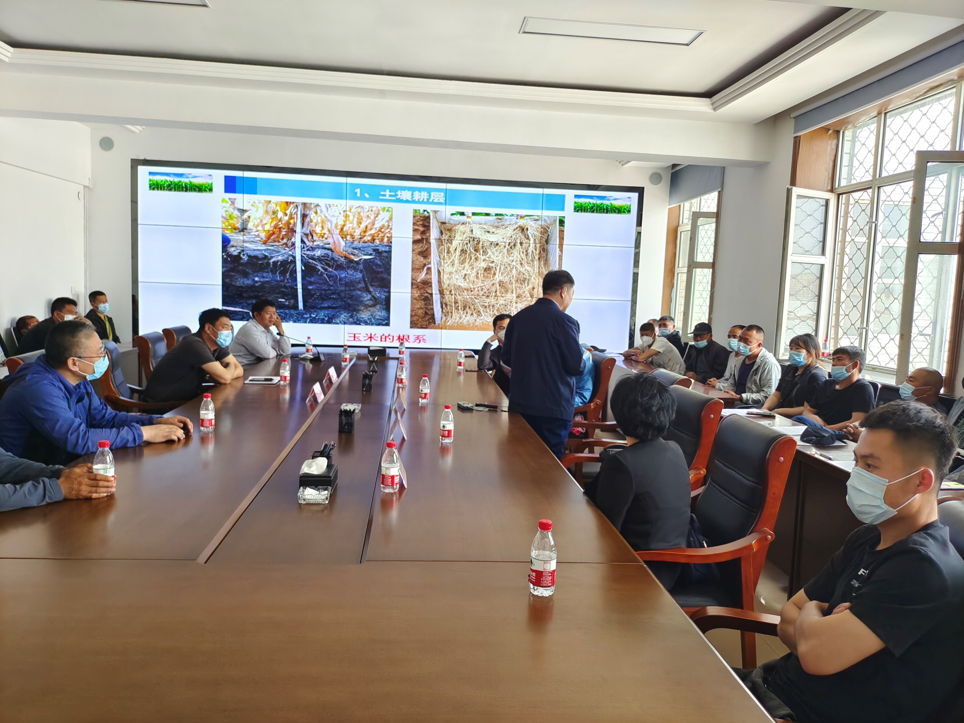 在肇东市黎明镇黑土高标准农田建设示范区田间和地头,专家组成员与当地农民和技术人员进行了热烈讨论,对目前我省正在实施的黑土地保护利用技术的先进性和局限性进行了分析,探讨了适合肇东市的黑土地保护技术措施。第二站在肇东市内为新型农业生产主体和农民种田大户举办了黑土地保护利用技术专项培训班,参会人员多达40余人。会上韩晓增研究员讲解了黑土地保护的“龙江模式2.0”、作物高产高效的肥料施用技术以及目前已经在海伦示范区实施黑土地保护技术实施效果,现场回答了农民有关旱田、水田生产和土壤改良方面的技术问题。郝玉波博士做了玉米高产栽培过程中如何实现黑土地保护与玉米高产高效的多重目标的技术模式的报告。冯艳忠研究员讲解了水稻生产中的技术问题并回答了农民有关稻田秸秆还田所遇到的有毒气体排放的防治问题,并为农民免费提供了具有“固氮除臭”功能的菌剂。第三站专家组到达了2021年10月21日许勤书记等省市领导曾调研过的黑土地保护利用“龙江模式”的肇东市昌五镇昌盛村黑土地保护试点地块。该地块目前苗齐、苗壮,与未采用黑土地保护的龙江模式相比较,保苗率提高了5个百分点,土壤重量含水量提高了4.5个百分点,玉米叶龄提高1.5个叶龄,株高提高2.5 cm(株高27cm)。在场的技术人员和农民均表示,来年一定要按照示范区的模式进行种地,保护好黑土多打粮食。
