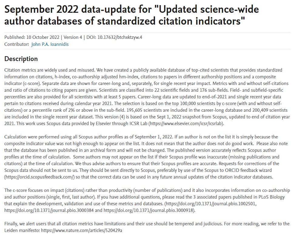 全球前2%顶尖科学家榜单是由斯坦福大学John P.A. Ioannidis教授团队发布,此次发布的为2022年版本,也是该团队公布的第四版,所有指标与数据均公开并自由下载,是目前最具公信力的一项学者学术影响力榜单。