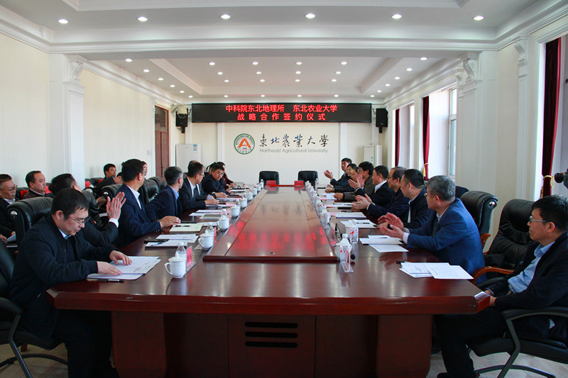 东北地理所人事教育处与东北农大研究生院,中科院黑土区农业生态重点实验室与东北农大农学院、资源与环境学院,中科院大豆分子设计育种重点实验室与东北农大农学院、生命学学院,中科院湿地生态与环境重点实验室与东北农大资源与环境学院、水利与土木工程学院,东北区域发展研究中心、遥感与地理信息研究中心与东北农大公共管理与法学院分别签订合作协议。
