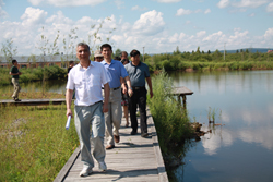 8月1-2日,丁仲礼副院长一行在何兴元所长等陪同下也考察了小兴安岭新青国家湿地公园,当了解到新青国家湿地公园不仅是珍稀水鸟白头鹤重要栖息地,同时还提供旅游休憩服务功能,丁仲礼副院长建议湿地科学研究不仅要注重自然科学研究,也要兼顾解决地方政府和公众需求的科学问题,实现湿地保护与合理利用并重。伊春市马建路副市长、科技局王伟光局长等参加陪同。