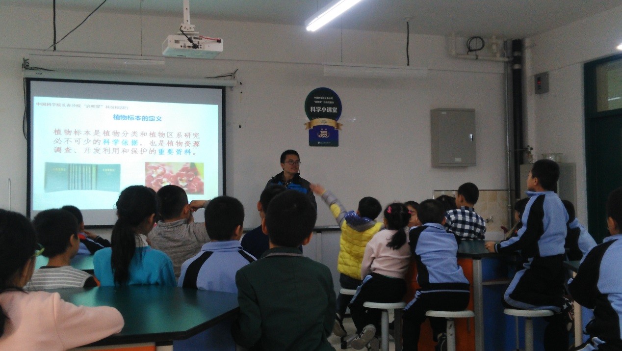 2017年11月3日,东北地理所湿地标本馆刘波博士到长春市外国语实验学校为小学三年级学生开展主题为“腊叶植物标本介绍及制作”的科普活动。他首先采用图文并茂的方式,介绍一些常见的植物,标本的种类,植物标本的用途及腊叶植物标本的制作方法等,内容配合图片并加以解释以便于学生理解。在讲解完相关知识点后,他和助手潘媛拿出在所里准备好的标本制作材料,现场教同学们制作标本,传授了植物标本的制作方法。