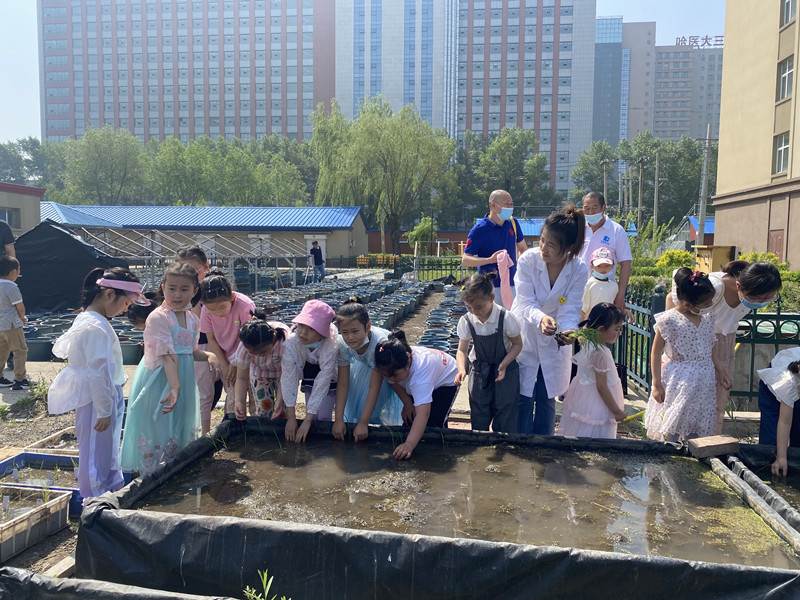 在温室、盆栽试验场,田晓杰博士给同学们详细讲解了水稻植株的构成以及育秧、插秧、收获全过程,并带领同学们体验了插秧过程。同学们不但了解了日常食用的米饭的由来,也感受到了“汗滴禾下土、粒粒皆辛苦”的艰辛,“节约粮食、拒绝浪费”从小做起。