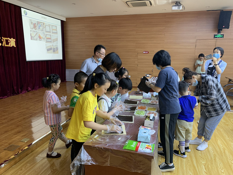 在最后优质大米品尝环节,沙汉景和刘佳博士向同学们介绍了我所方军团队利用分子设计育种手段改良的“科优1号”优质大米及寿司的制作过程,并与家长、同学们共同制作、品尝了三个品种大米制作的寿司。寓教于乐,孩子们在开心快乐中增强了动手能力。