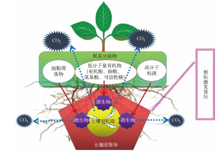 当植物落叶等中的易分解有机碳进入土壤后,微生物以这部分碳为食,但是总是吃碳使微生物有点儿营养不良,需要补充氮等其他营养元素,于是微生物转而分解土壤中的原有有机质来释放氮等营养元素,从而满足自身对氮的需要,因此引发了正激发效应,促进了土壤原有有机碳的矿化和CO2的释放。