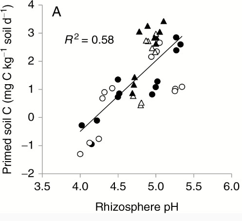 土壤pH可以通过影响微生物的组成、植物根系的生长和伸长、菌根的共生等影响激发效应的大小。一般土壤pH为5-8时微生物和胞外酶具有较高的活性,易于产生较强的激发效应。
