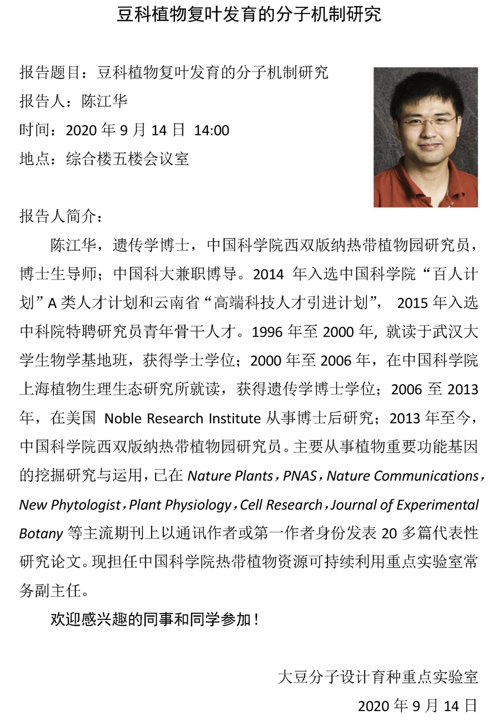 豆科植物复叶发育的分子机制研究-陈江华 研究员